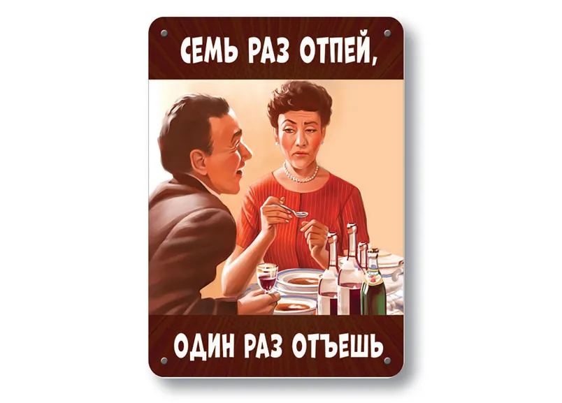 | Текст | Материал: эмалированный металл, керамический краситель Размер: 200x260 мм Отверстия: по углам | |